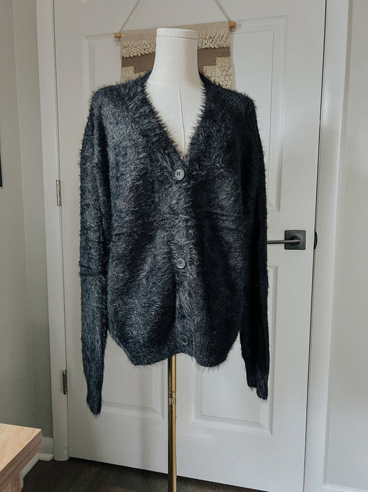 Fuzzy Oversized Cardigan - Black