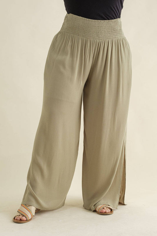 PLUS Wide Leg Palazzo Pants - Olive Green