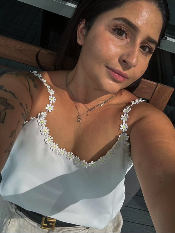 This tank top features a daisy flower neckline and straps, giving it a sweet and cute look. The low neckline and sleeveless design add a touch of sexiness and coolness.