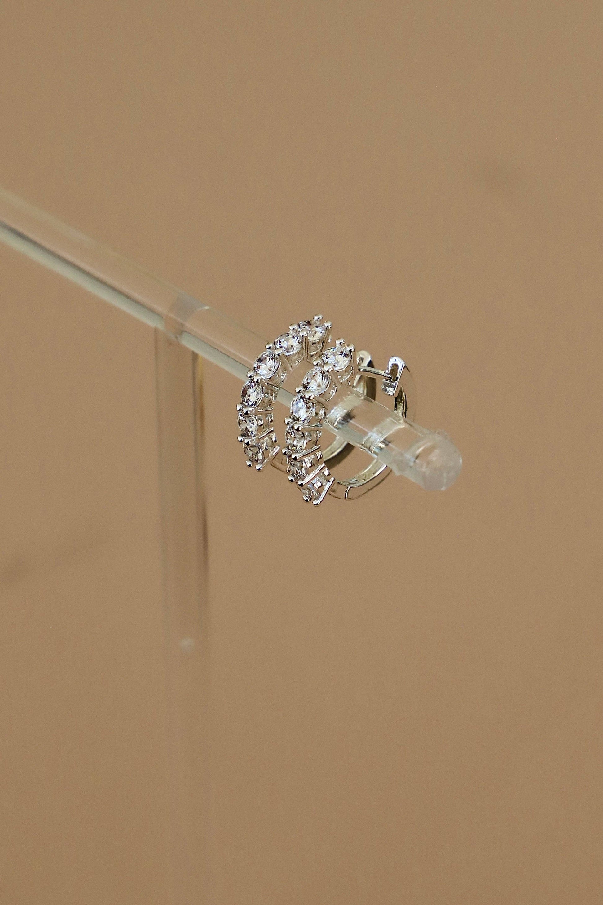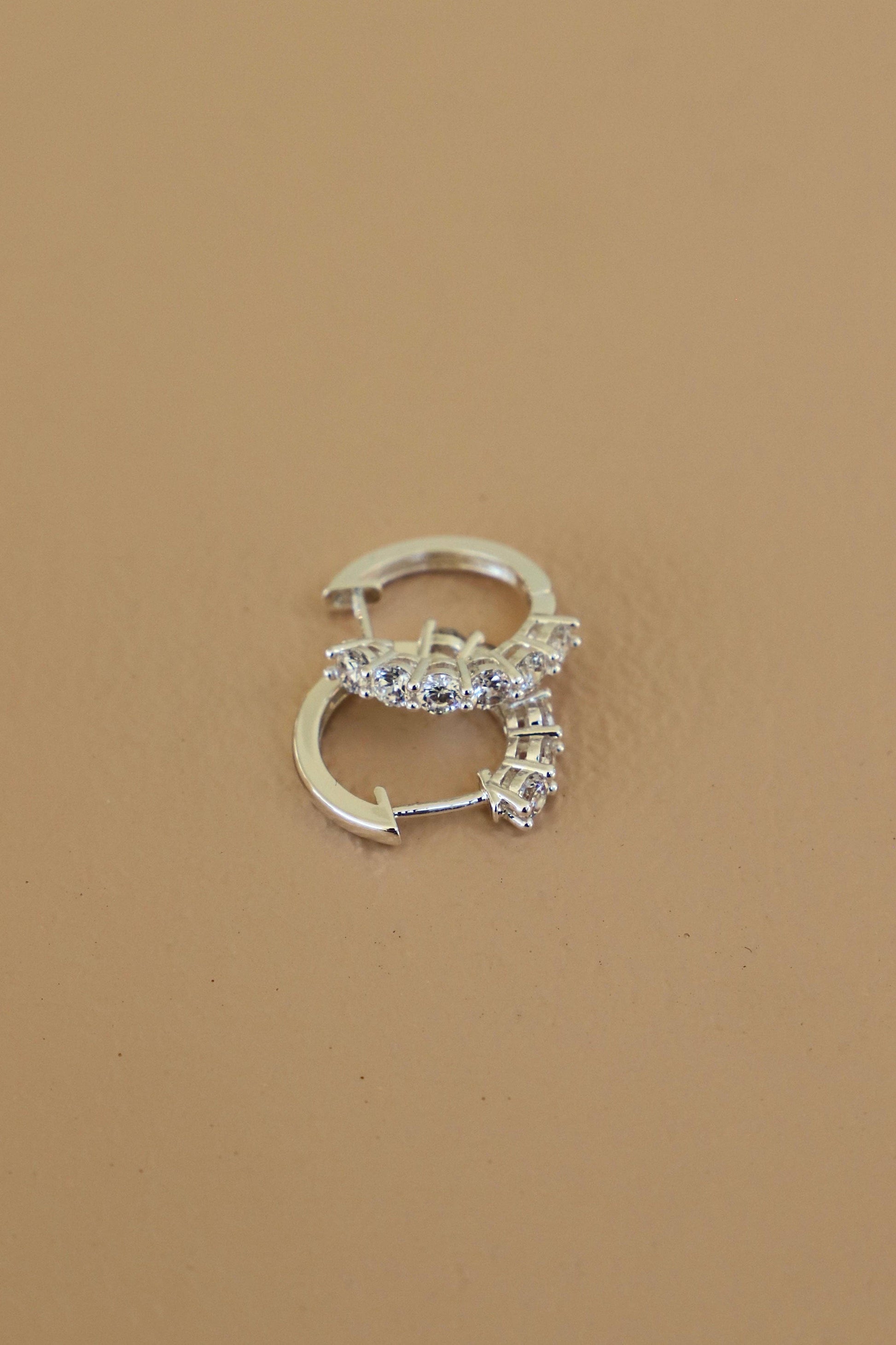 Materials: - Silver plated Brass - Latch closure huggie - Cubic Zirconia